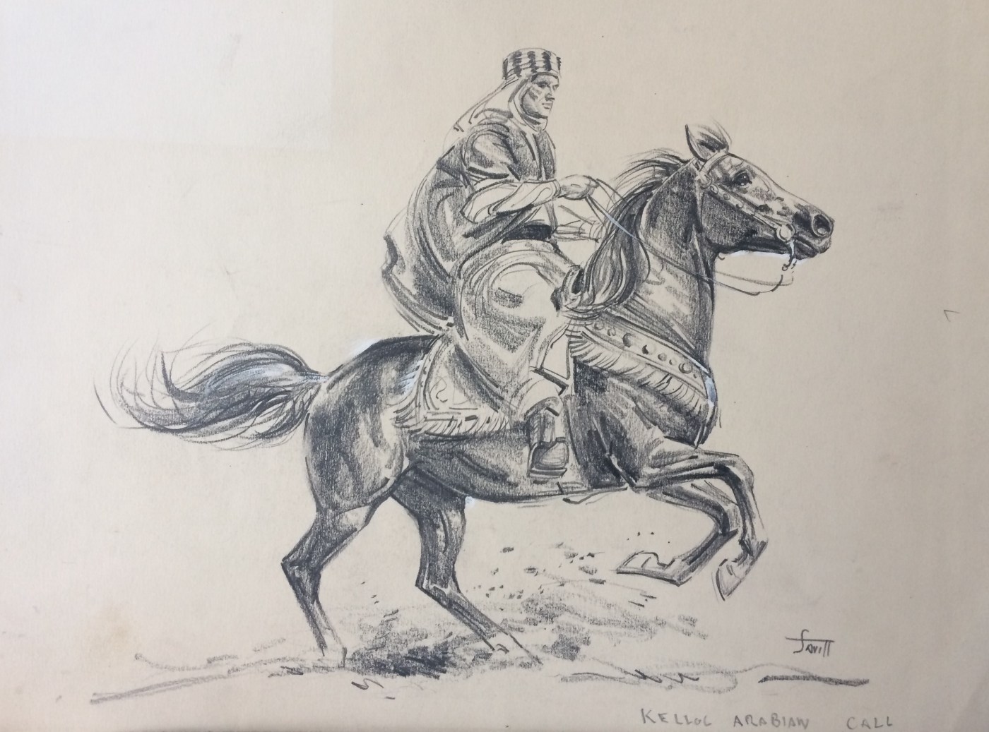 This 10 by 14 inch drawing was done for either a book or magazine article. Most of the publisher’s notes in the margins have been taken away. The detail in this pencil drawing is extremely rich and well-preserved even though it is probably at least 30 to 40 years old. Price: $850.