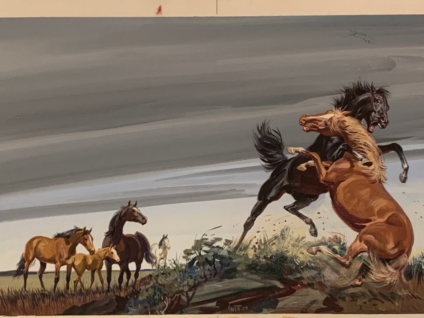 Since the 1950s, Sam Savitt frequently illustrated the covers of books, more than 130 by other authors, plus 15 of his own. The right half of this watercolor, whose entire image measures 13 by 19 inches, would have been the front cover. (That’s why the signature appears in the center. ) The left side of the painting was the back cover. Price $1,000. (SOLD)