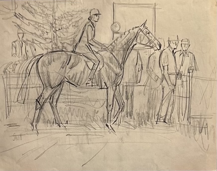 When Sam Savitt was experimenting with an idea for a painting he would often start with a rough concept of how the final artwork would appear. These sketches were themselves a fine example of how good an artist he really was. This sketch on paper measures 17 by 13 inches. Price: $100. (sold)