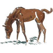 This portrait in pencil from the 1970s is a great example of the quick studies done in preparation for larger pieces. This pencil drawing is on paper and measures 13 by 17 inches. (sold)